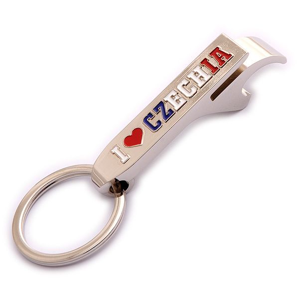 Pevná kovová kľúčenka s otváračom na fľaše.