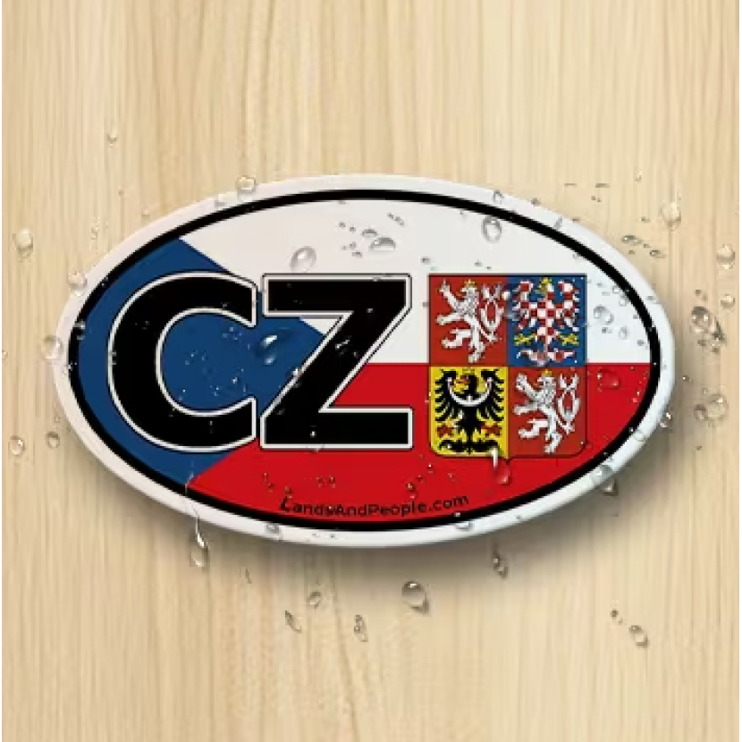 Pevná samolepka so znakom Českej republiky a nápisom CZ.